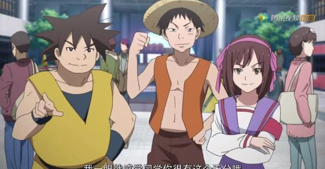 话说一来就遇到社团招新,这个一定是cosplay社。左边的应该是悟空吧,中间的路飞,右边的是凉宫春日。都毁了。