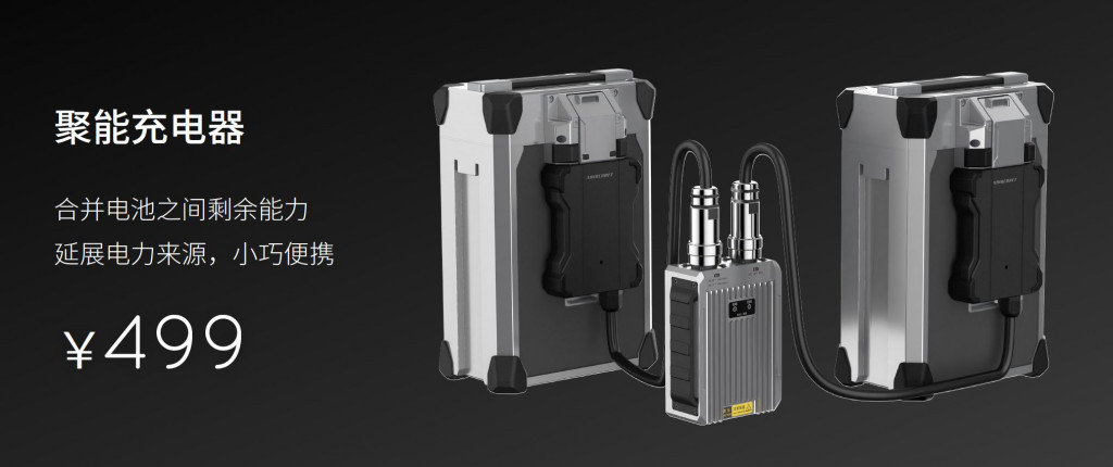 值得一提的是,在充电这个问题上,极飞研发了 XBMS 智能电池管理系统,官方称同样电量电池成本下降了 70%,降低大面积连续作业的充电成本。其中,性价比极高的「储能充电器」,内置两路并充,全面代替田间发电机;「保姆充电器」能同时看护 4 组电池连续充电;「聚能充电器」能合并电池剩余能量,延展电力来源。