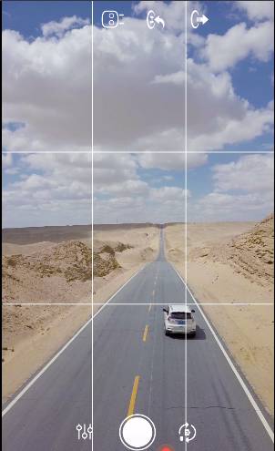 使用“御”拍摄有延伸感的照片:第一步,向左滑动屏幕,切换竖拍模式。