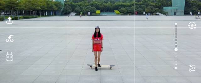 使用“御”拍摄环绕跟随镜头:第一步,让目标位于画面中央。