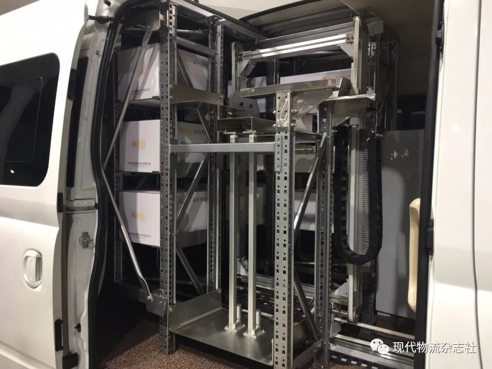 智能物流车,是智能物流配送系统的重要组成部分。主要采用车载货架和车载堆垛机相结合的自动化系统来存放和运输货物。纯电动物流车额定载重量达到1255kg,最大尺寸可达530×320×230mm。此外,物流车作为纯电动车型,有效实现节能减排,践行绿色环保和理念和新能源发展之路。