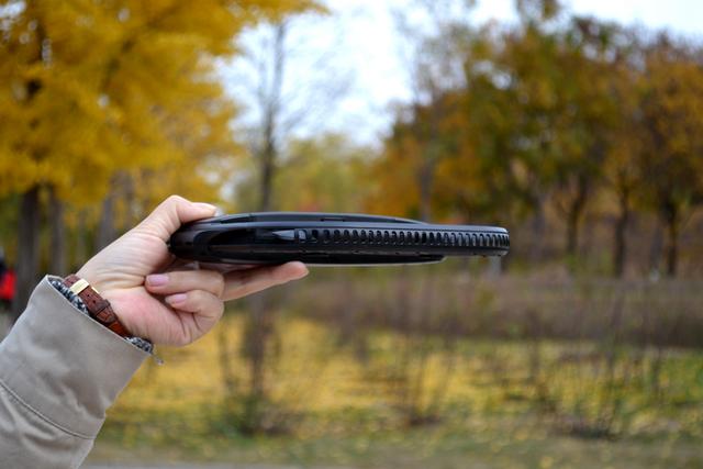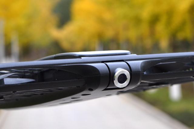从侧面看Lankiya掌飞相机的厚度非常薄,但得益于一体成型的碳纤维结构,整机还是抗性十足的。