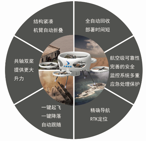 记者了解到卓翼智能研发生产的系留无人机可实现24小时全天候滞空72小时不间断工作,100-200米滞空,多种载荷能力、安全稳定性极强,已获得国内多项技术专利。广泛适用于救灾抢险、边界巡视、基地安全、景区监测、地质勘测、野外作业、森林防火、应急通信、公安反恐、交通监管、新闻采访、工程监控、环境监测、影视拍摄、科学研究、国防军工等多个广阔领域。