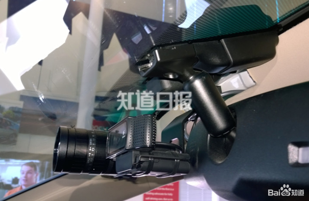 有两个摄像头,两者保持着一定的距离,如同人类的双眼视差,可以帮助汽车确定自己的位置以及行进速度,摄像头有激光发射器不可替代的作用,可以辨识道路上的信号灯与信号标示,保证自身运行遵循交通规则。