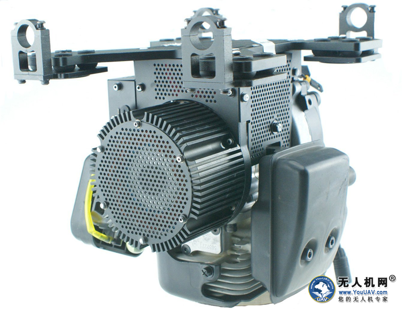 无人机搭载H2油电混合动力系统,使用汽油转化为直流电直接输出,做为电池动力替代者,可以方便便捷地挂载在多旋翼无人机及固定翼无人机上。该系统为无人机在测绘、巡检、军警、救灾等领域的使用大大提高了航时,成倍提高无人机作业效率,使无人机在工业上的使用更为实用便捷。电动多旋翼无人机凭借简单灵活的操控和极高的性价比已经成为工业级无人机的主选机型,但是实际应用中受困于电池能量密度的弱点,造成航时太短难以推广。