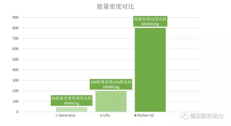 H2相对传统发电机,最大的优势是具备超高的能量密度及独特的整流稳压技术,使得H2可以作为无人机的动力输出。