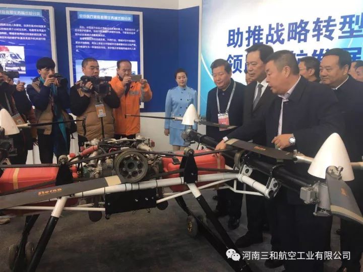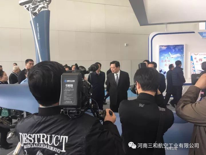 河北省副省长王晓东在博览会上参观了我公司的无人机,询问我公司自主研发生产的“祥云320”载人无人机和“穿云鹰”无人旋翼机的设计原理、航时、载重、用途,对我公司生产的产品给予了很高的评价。