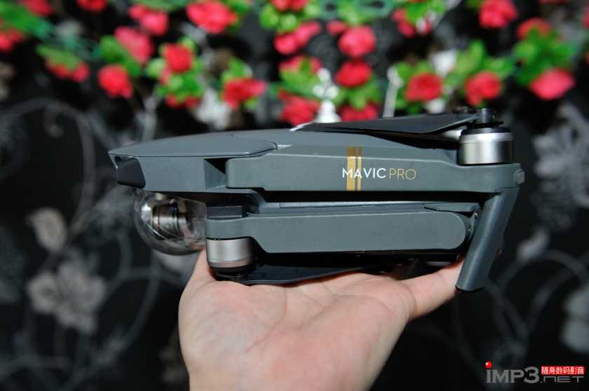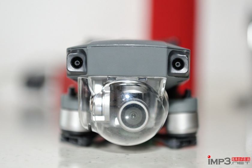 Mavic Pro的云台为三轴机械云台,开机状态下(电机没有启动时)我试着用手上下倾斜机身,发现这个云台会自动修正摄像头的角度,这对于高速飞行时拍摄视频的画面稳定性非常有帮助。从理论上来说,同款摄像头用机械云台的画质表现肯定比电子防抖要好,当然机械云台成本方面也更高一些。从这一点来说大疆还是很有诚意的。