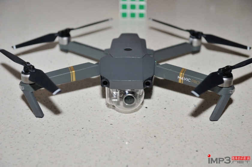 Mavic Pro的机身体积颠覆了我们对于无人机以往的认知,它折叠起来实在太小了,图片上对比的是一个标准尺寸三阶魔方,可以看出Mavic Pro比起大疆精灵系列无人机实在是小太多太多了。