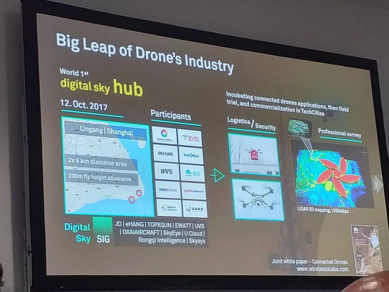 华为无线应用场景实验室Wireless X Labs还专门成立了低空数字化特别兴趣组,汇聚政府、运营商、无人机厂商、行业组织和客户,并于2017年10月在上海成立首个低空数字化应用创新基地,致力于联合推进联网无人机示范项目,2018年将拓展至欧洲、加拿大、韩国等地。