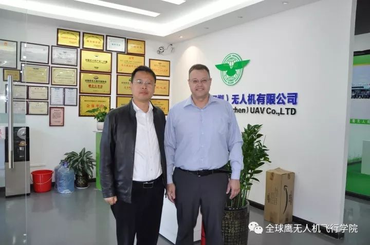 全球鹰无人机董事长余景兵和以色列Sky-Hopperpro公司运营总监Rony先生合影