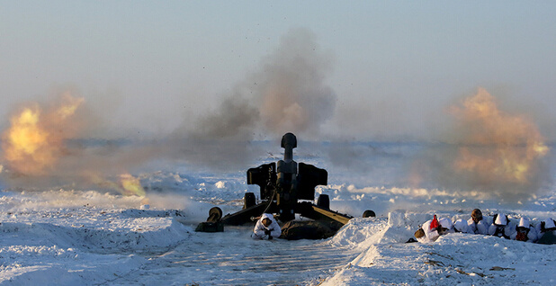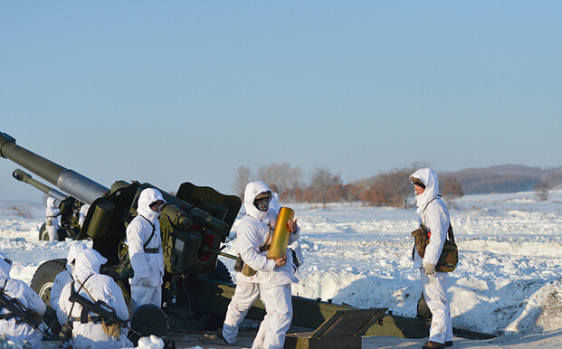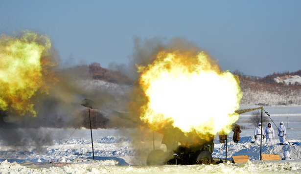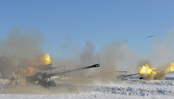 雪野中重炮齐发,场面非常壮观。