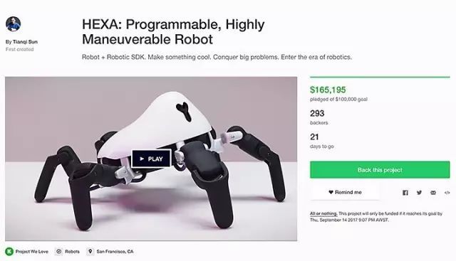 不久前,HEXA 在众人瞩目中登上了Kickstarter,而它也已在Kickstarter 的机器人项目里创造了历史级的表现——仅用了3天时间,就达到了预期目标的10万美元。