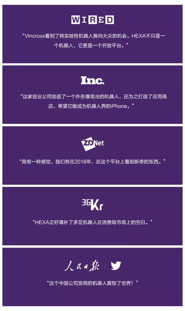 样子萌, 还获得了2017 iF 设计大奖,并在亚洲消费电子展(CES Asia)CES 2017中,首次亮相就惊艳全场,获得了创新产品奖机器人~ 这款由 Vincross 人工智能科技公司的创始人孙天齐,研发的全球首款可编程全地形消费级机器人,名为——HEXA
