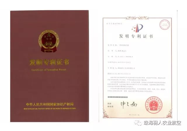 通过珠海羽人同仁的共同努力,近日,珠海羽人荣获国家知识产权局颁发的“一种农用航空器”。一种农用航空器,旨在提供农用航空器旨在提供一种整体结构简单、拆装方便、方便收纳、具有光电显示、仿地飞行和避障能力的更适合农田喷洒作业的农用航空器。这项发明专利已经成功应用于谷上飞农用无人机上,并得到众多用户的青睐。