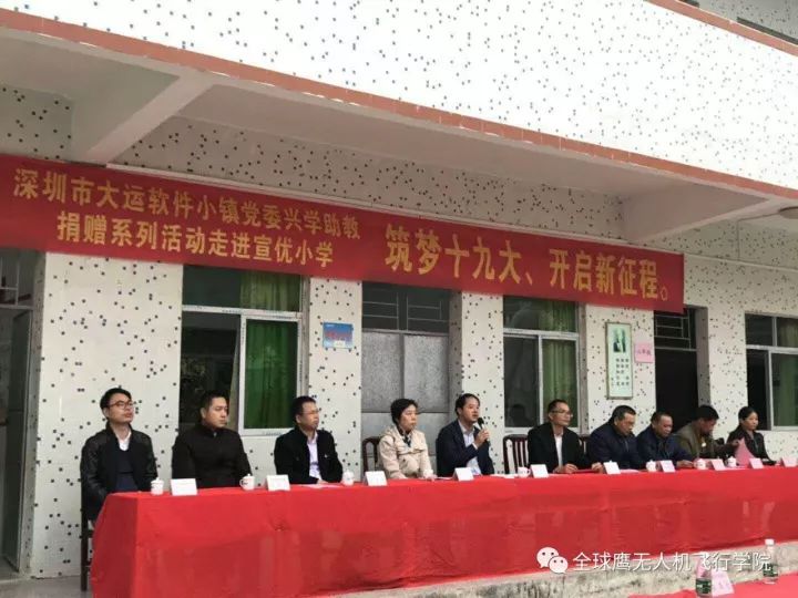 11月24日第三场现场活动,深圳市大运软件小镇党委兴学助教起航科技产品走进梅州市梅林镇宣优小学,看望留守儿童!同样,除了赠送书籍、学习、体育等学习物品,还赠送无人机、VR眼镜、3D打印设备等科技产品到校园,并送上助学金,兴学助教!当日捐赠现场,全球鹰无人机董事长余景兵设置的“无人机”体验环节最受同学们钟爱,余总为同学们送去了一批无人机,并且现在教同学们体验飞行乐趣。