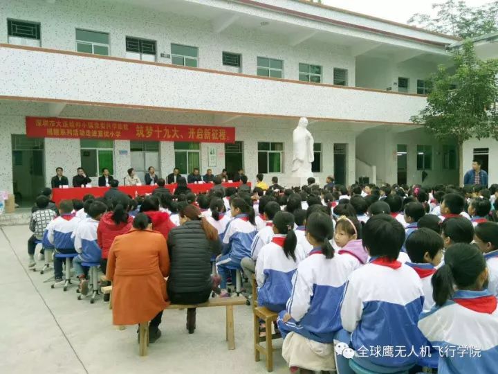 11月24日上午,在深圳市大运软件小镇党委书记宋俊平带领下,大运软件小镇联合党支部书记余景兵(全球鹰无人机董事长)及部分企业家党员来到广东省梅州市化育小学,送无人机、VR眼镜、3D打印设备等科技产品到校园,并送上助学金,兴学助教!