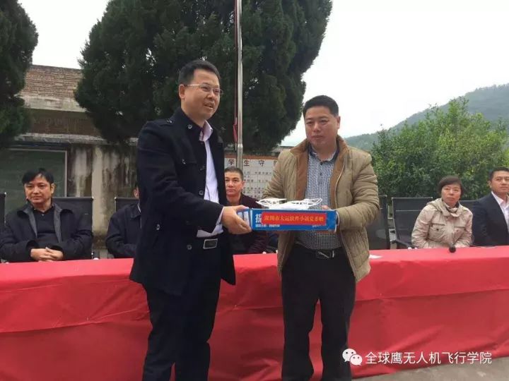大运软件小镇联合党支部书记、全球鹰无人机董事长余景兵向化育小学捐赠无人机/图