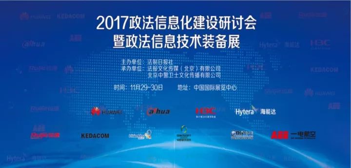 11月29日由法制日报社主办,法报文化传媒(北京)有限公司、北京中警卫士文化传播有限公司承办的“2017政法信息化建设研讨会暨政法信息技术装备展”于北京老国际会展中心1号馆举办。会议就政法信息化建设、政法大数据安全与运用等主题进行了深入研讨;华为技术有限公司、AEE深圳一电航空技术有限公司等46家知名高科技新装备企业参展。