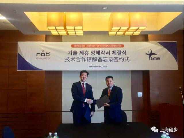 2017年11月14日,硅步机器人与ROB公司在首尔万豪酒店就双方在为技术创新发展方面的经验互换以及进一步商业合作签订技术合作谅解备忘录。