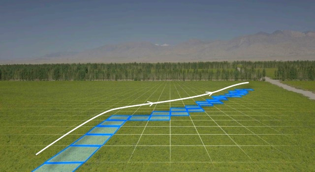 以网格为基本单位,无人机在一块农田进行喷洒作业,当无人机飞到一个“空白网格”(未喷洒过农药)的上方时便开启喷洒,并标记该网格已喷洒农药。当飞到一个“已喷网格”的上方时能够立即关闭喷洒,从而避免重喷。
