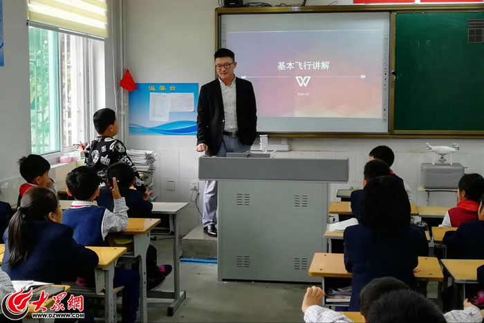11月28日,济南市汇波小学西校区的操场上一架无人机腾空而起,学生们一片欢腾。这是在上什么课呢?原来是该校与蓝梦无人机培训机构联合开展的无人机科普体验课程,今天是二年级同学们经过了理论课学习后的试驾体验活动。