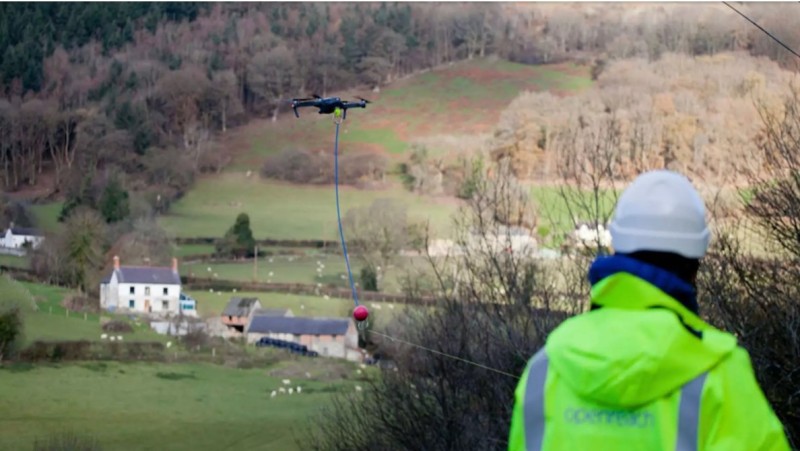 英国不少偏远农村地区地势险恶,民居与信号收发站被河川、山谷、石壁阻隔,令电讯设备难以建立,同时因地面多是岩石,把电线从地下穿过同样不可行,使装置村庄光纤电缆的工序非常复杂。但原来一台无人机、一条鱼丝和一个网球,就能解决这个大难题。