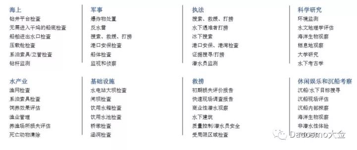 其实,以上这些不过是VideoRay能耐的冰山一角。由于VideoRay使用方便,小巧轻便、功能多样、成本效益高,它在全球各地多个行业都有应用,并得到客户的高度认可。下面是VideoRay已应用行业与领域的概括: