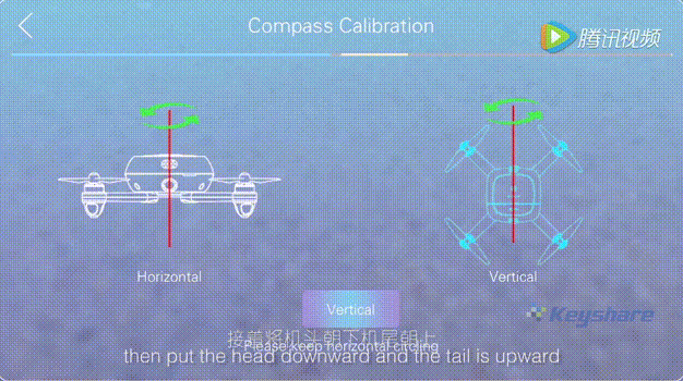 接着将机头朝下机尾朝上,垂直旋转,等待垂直校准指示条读满,读数完成即可。