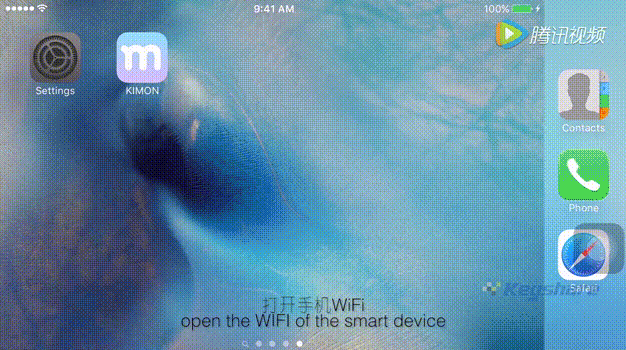 打开手机WiFi,搜索到开头为KIMON的WiFi并连接,初始密码为1234567890,等待连接成功。