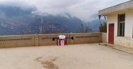 12月14日上午,这条空中走廊已成功开启。记者在现场看到,无人机起飞点位于美姑县乐约乡巴姑村,是一个与“悬崖村”峡谷之隔的幼教点,这里视野开阔,高度落差适合无人机飞行,方便运输药品到附近各个村落。此次飞行大概用时5分钟,无人机将10公斤药品送达“悬崖村”。然而,如果使用人力加交通工具运输,则需要至少6-9个小时。