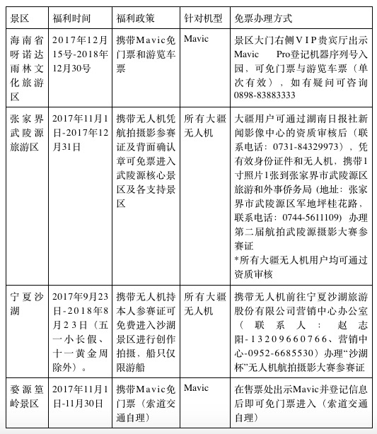 大疆与国内四大景区建立合作的意义在于,联手申请长期空域,一来推动航拍旅行的规范化,二来发掘和创造更多让用户“畅快飞”的机会及场景,目前大疆正在通过各地经销商、飞手团队征集适合开展航拍旅行合作的风景区、未来还有更多风景区对无人机用户敞开大门。