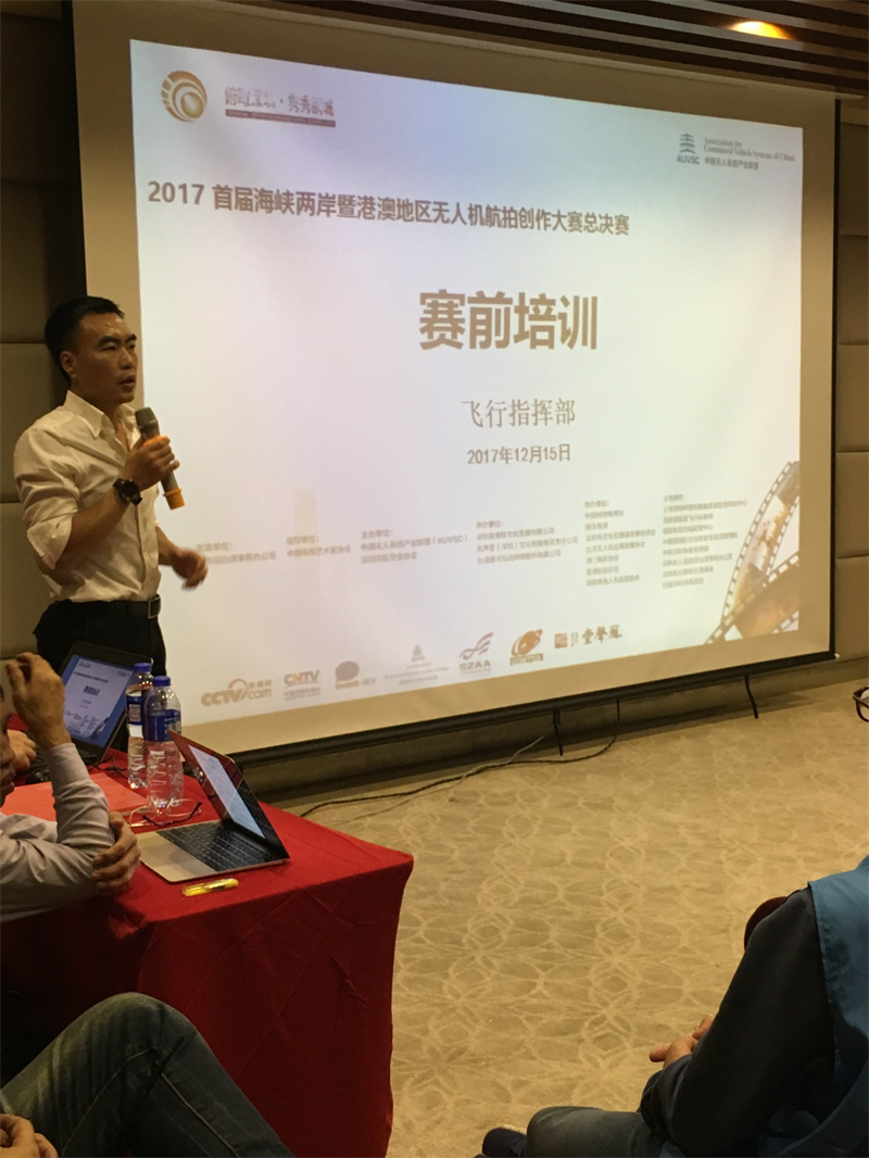 15日晚,经过初赛筛选的20支航拍团队全部报到后,组委会特别安排了一场“见面会”,所有78位选手与赛事组织者共同出席并自我介绍。首届“海峡两岸暨港澳地区无人机航拍创作大赛”主办单位之一——中国无人系统联盟AUVSC秘书长孙柏原介绍了本次大赛的组织情况、日程安排和参加见面会的工作人员,并就即将开启的总决赛作了赛前动员。