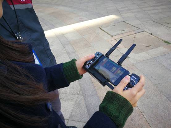 试飞的时刻来了,刘女士开始还有点胆怯,默默后退半步,服务人员nice地解释了GDU O2的基本飞行操作和注意事项,精准的飞控技术保证了飞机稳定的悬停及飞行,所以安全系数大大提高。