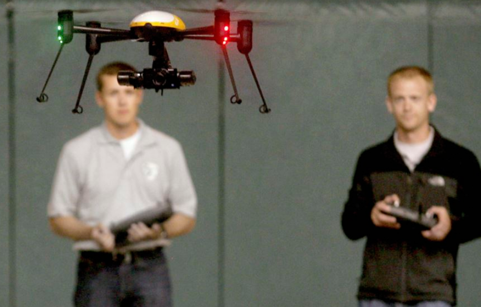 (北达科他大学(UND)航空航天科学学院学生在操作无人机)
