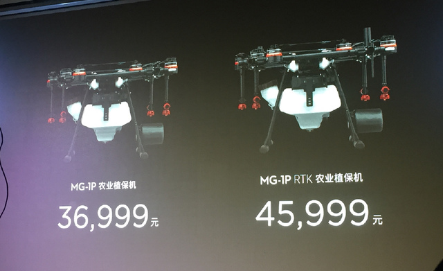 MG-1P 系列分为使用 GPS 定位以及 RTK 定位两个版本,两者定位精度分别为米级和厘米级。单套包含植保机、遥控器、雷达的价格,分别为 36999 元和 45999 元。