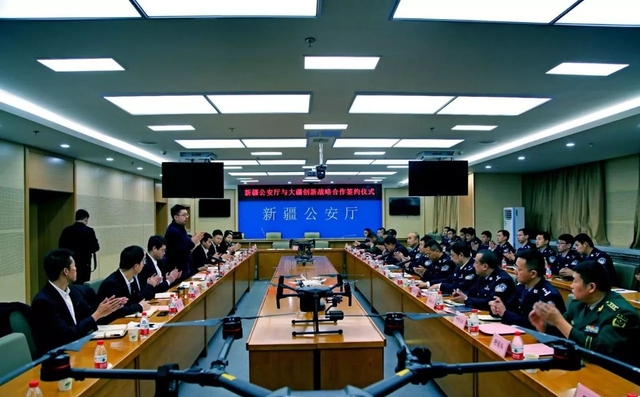 12月12日,新疆自治区公安厅与深圳市大疆创新科技有限公司签订警用无人机战略合作协议,就大疆无人机应用于自治区警务实战达成深层次合作。通过飞行与信息技术的引入,加强新疆自治区公安的科技装备应用。
