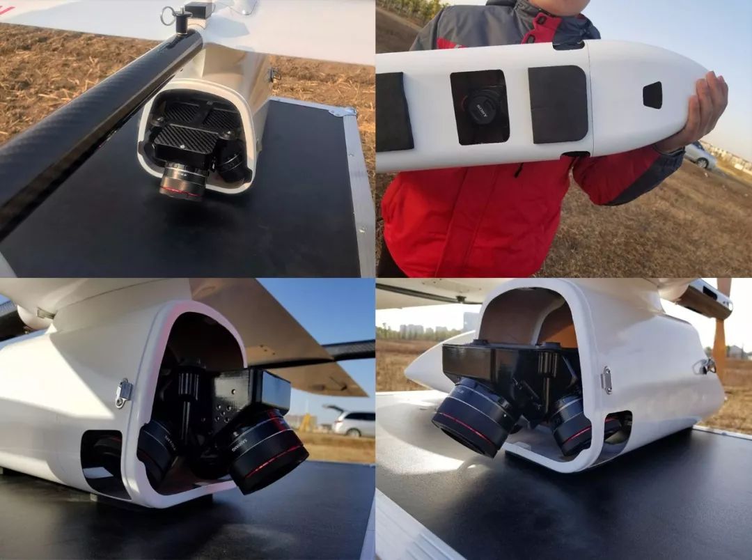 无论是五相机的相对关系,还是集成后的整体成像效果,我们都针对CW-10大鹏小型固定翼无人机特殊的的机舱结构和载荷大小进行了改进。