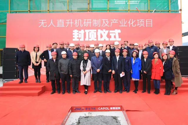 上午10时50分许,由八位参与典礼的嘉宾手握金锹,完成无人直升机研制及产业化项目封顶仪式,标志着项目的正式封顶!