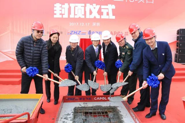 2016年9月28日,深圳联合飞机无人直升机研制及产业化项目举行了隆重的奠基典礼,经过建设团队艰苦奋战的四百余个日日夜夜,2017年12月17日,我们迎来了项目工程主体结构的封顶庆典!
