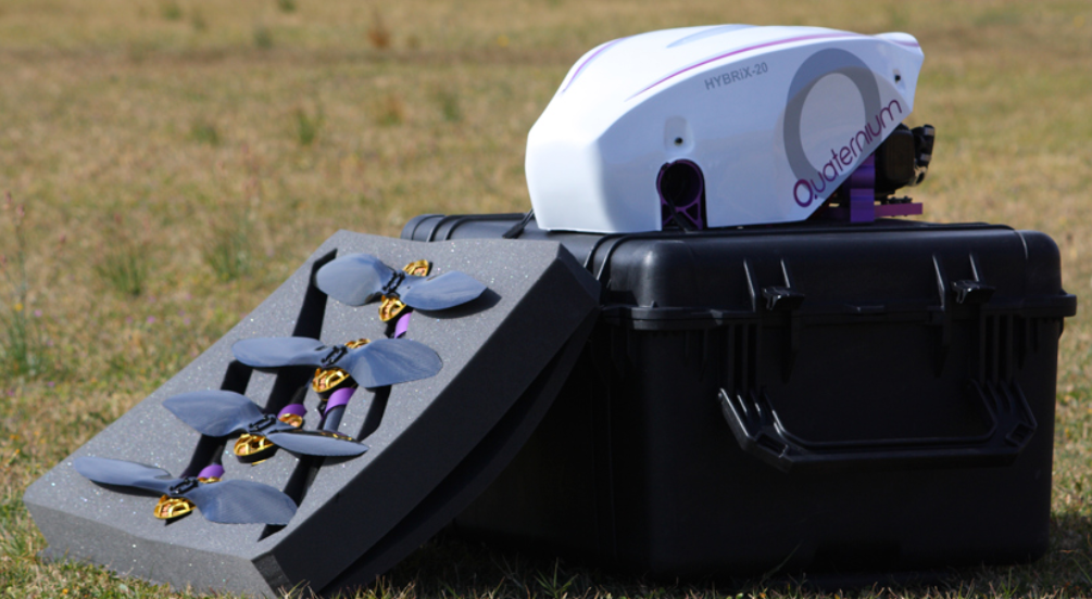 Quaternium公司之HYBRiX.20型四旋翼无人机采用汽油发动机+锂电,与全锂电动无人机相比,该机具备更长的续航能力,寿命更长。这种无人机可以用在多种应用场景,比如对灾害情景长时监控等等。