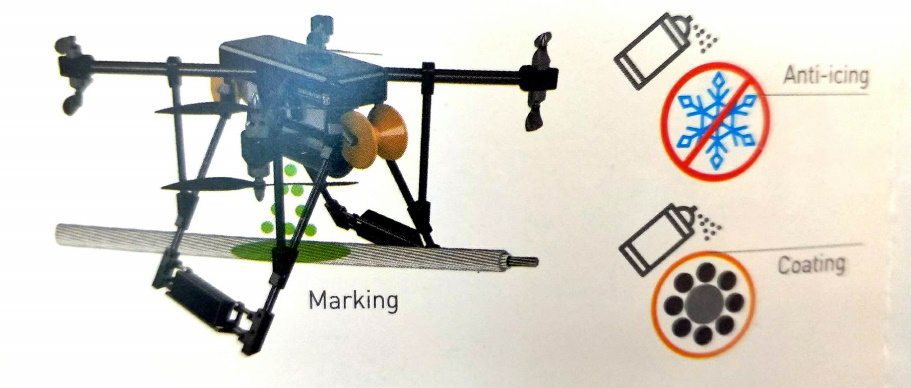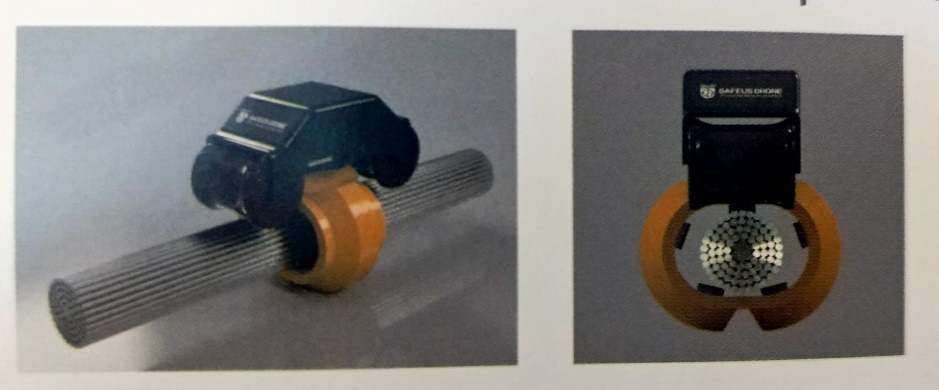 该无人机可以对2-15CM的电线进行抓取并附着在上面。机身两端携带有滚轮,由于“停歇”在电线上,因此无人机移动的时候只需有非常小的姿态调整电力。