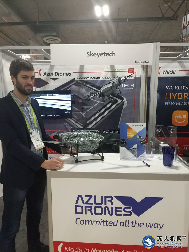 法国公司为军队做安防相关的任务,展会这款无人机可实现单兵作战,连续飞行45分钟,其最大的特点就是快拆,便携等特点。