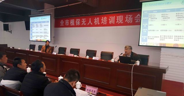 在植保无人机培训现场会上,特别邀请了省内外的两名农业无人机领域的资深专家学者现场教授培训无人机植保的知识。