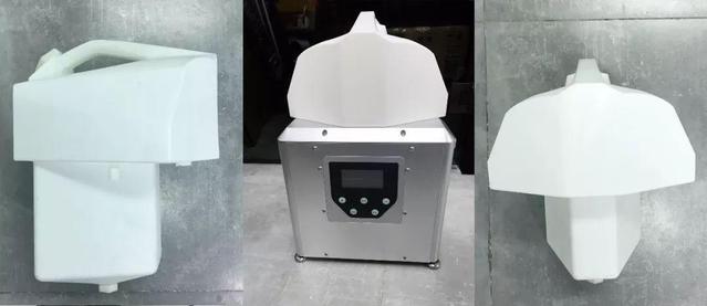 该药箱可定制配套的智能灌药机,支持外置电源,可直接在田边使用飞机电池充电。