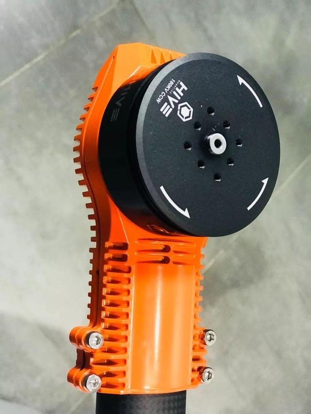 首先,不同于此前两款产品的四轴设计,新品云蜂植保无人机升级为六轴旋翼,更结实也更稳定。整个机身在“体型”上前后拉长,采用前中后模块化设计,便于更换药箱和电池的更换,同时也让后期的维修变得容易。黑色机身整体采用3mm碳纤维板材,橙红色外壳主体呼应六个同色电机,电机包裹式防撞保护设计,安全系数显著提升。螺旋桨采用高强度工程塑料,可折叠设计,便于拆卸与维修。