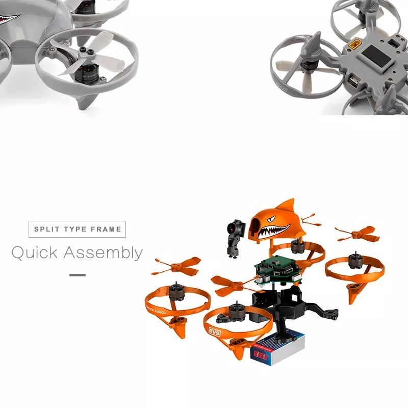 在以上配置中,小伙伴们就可以知道这款迷你穿越机会比DYS-EIf穿越机更加暴力。并且,在得到很多小伙伴们的反馈后,我们也在机架的材料上使用了PC,所以会更耐摔,并且体验感更好。其次,机架也是分体式的,这样极大的方便了小伙伴更快速简单的更换。