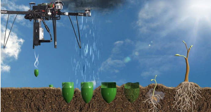 无人机用于种树这种方法令人意想不到,当然这也是只有先有了无人机这种产品之后才能联想到这一种快速而新颖的作业方式。据了解,全球砍伐大约150亿棵树,但仅植树90亿棵,这其中还并不包括如深林大火、天灾等自然情况。植被和深林的覆盖面积每年都在逐渐的减少。然而,环保部门虽然意识到这个问题,而且也做了很大的努力,但仍是伐大于种。如今,通过无人机快速种植可以轻松的解决影响世界生态环境的问题,可谓是为人类的居住环境做出了巨大的贡献。无人机可将装载正在发芽的种子包装飞行到预先确定的地形区域内,然后将这些种子逐一发射到土壤里。他们可以做到一秒钟发射一个种子包装的效率。据统计,一架无人机每天按正常工作8小时来计算,平均可以完成10万粒播种的数量,并且其还可以携带不同的种子类型,以帮助创建更多样化的生态系统。