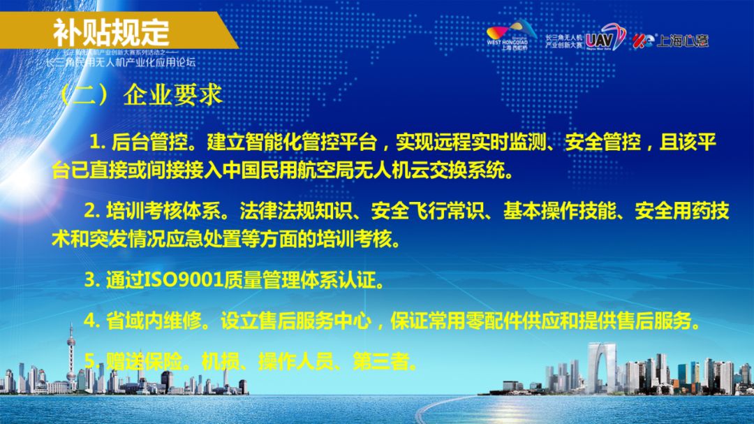 市农委施主任提到上海2035城市规划中特别指出上海将建立高科技商业中心,无人机产业就很好的符合了这一要求。