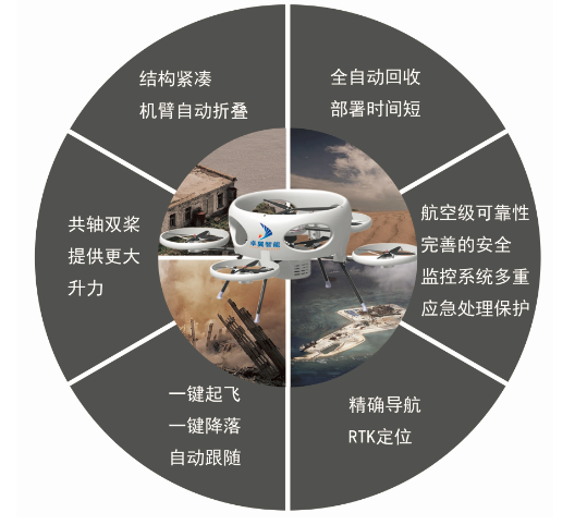 广大用户所关心的安全性问题,系留平台也完美化解。一键起收,简单快捷。简单的“起飞-悬停-回收”动作,省去了诸多麻烦,也使故障率大大降低。系留平台由系留线缆拴着,即使平台失控,也不会飞出以系留缆绳为半径的圆形区域。只要事先做好安全防护,系留无人机既不会飞丢、也不会造成人员受伤。